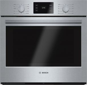The Bosch Wall Oven Features Genuine European Convection and Heavy Metal Stainless Steel Knobs. Convection Pro has a third heating element and a fan evenly circulates air around the cavity so you get consistently even golden results.Read More