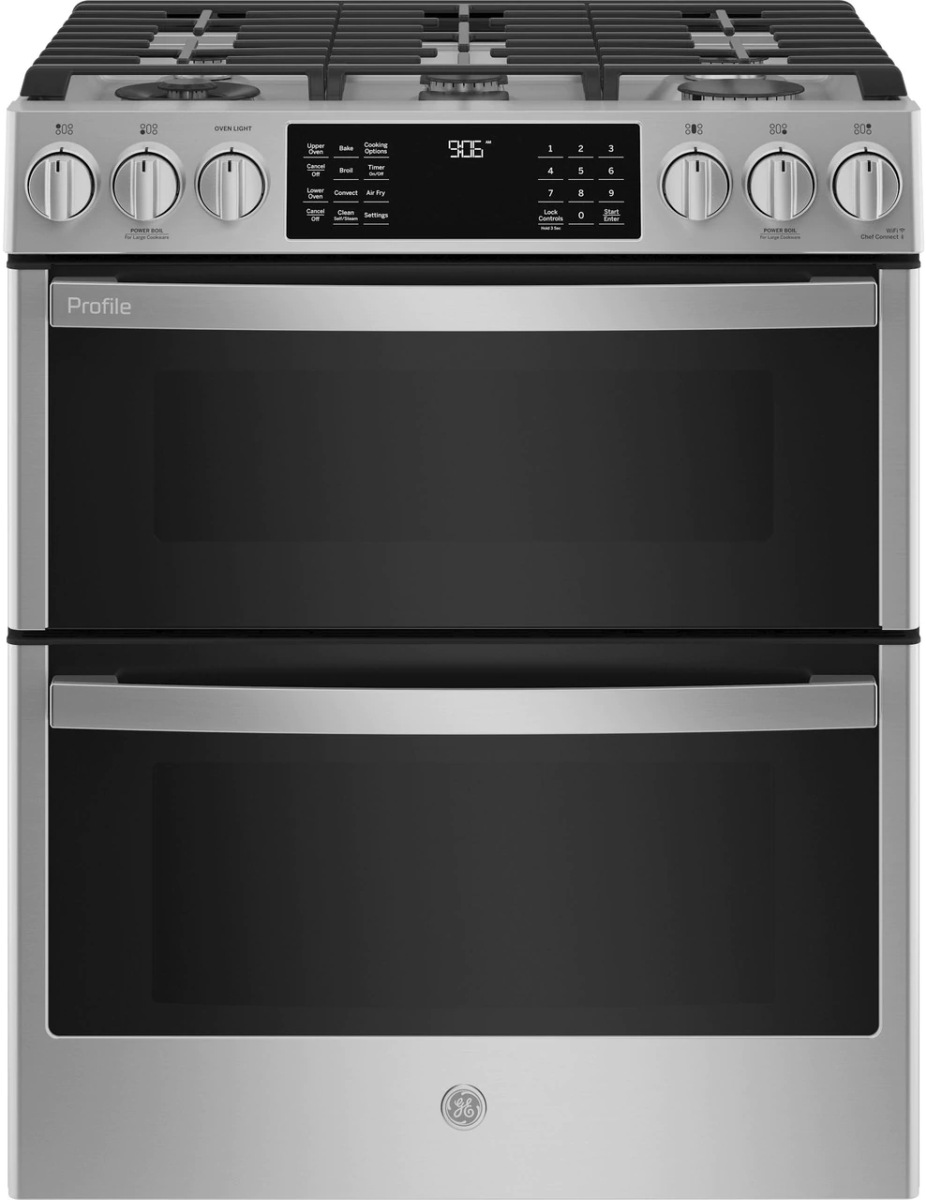 This GE® Profile™ 30" smart free standing electric convection oven features no preheat air fry and built in WiFi.Read More